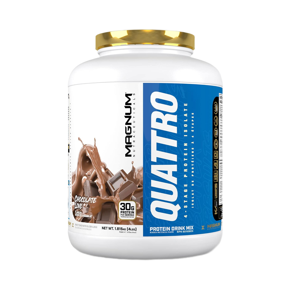 MAGNUM QUATTRO это четырехкомпонентная белковая смесь. У каждого из этих белков различается скорость усвоения, что даёт постоянное поступление аминокислот для организма на протяжение восьми часов.