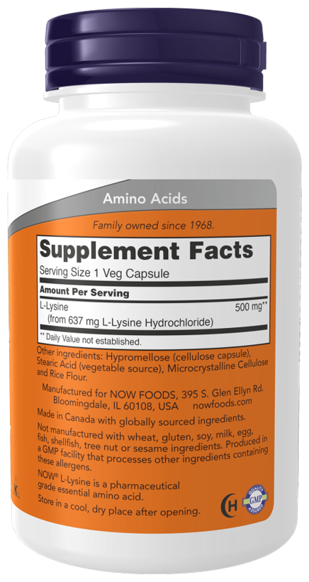 NOW L-Lysine 500 mg, 250 капсул