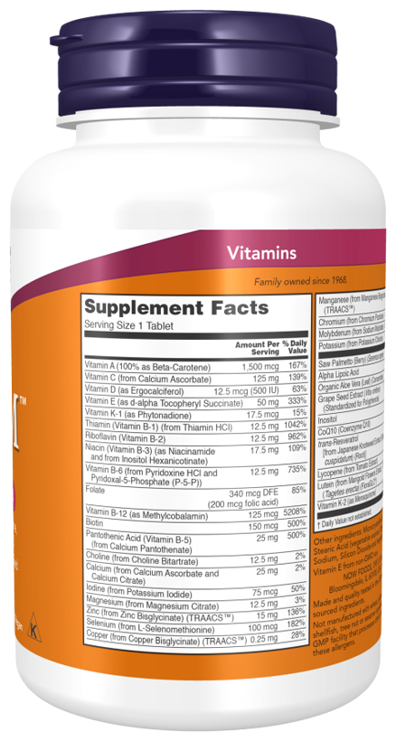 Adam Mens Multivitamin-это многокомпонентный комплекс, каждый ингредиент которого подобран таким образом, чтобы максимально укрепить и улучшить работу мужского организма. В его состав вошли все необходимые витамины и минералы, а также растительные экстракты, Коэнзим, ALA и другие важные компоненты. Все это вас ожидает в форме удобных и биодоступных таблеток. Кроме того, комплекс максимально безопасен, что подтверждает международный сертификат GMP, и может быть использован независимо от образа жизни и общего состояния здоровья.