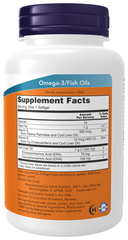 NOW Cod Liver Oil 1000 mg, 90 капсул