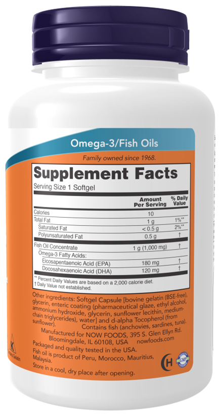 Омега-3 - этот натуральный концентрат рыбьего жира производится в соответствии со строгими стандартами контроля качества. Он протестирован на отсутствие потенциально опасных загрязняющих веществ (например, ПХД, ртути, диоксинов и других тяжелых металлов). Предварительные, но еще не завершенные исследования показывают, что потребление омега-3 жирных кислот ЭПК и ДГК может снизить риск развития ишемической болезни сердца.