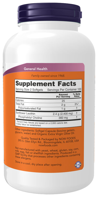 NOW Sunflower Lecithin 1200 mg, 200 капсул