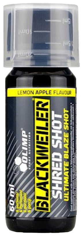 Olimp Blackweiler Shred Shot - пищевая добавка в жидкой форме, в состав которой входит кофеин, бета-аланин и ниацин с растительными экстрактами: экстракт васаби, экстракт имбиря, экстракт черного перца и экстракт перца кайенны.
