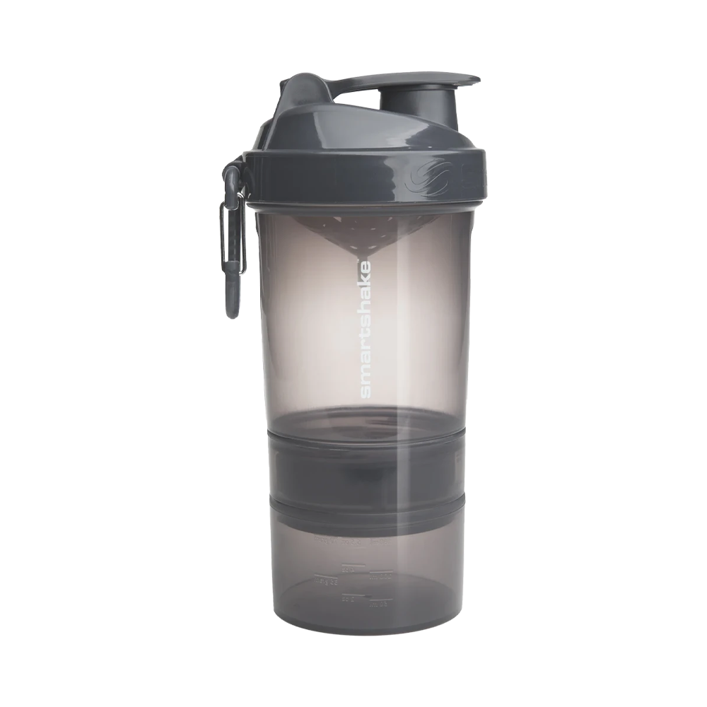 В основание шейкера ввинчивается контейнер с четырьмя отсеками для капсул и таблеток и контейнер для перекусов вроде орехов, ягод или сухофруктов. Это очень удобно. Ведь вы получаете возможность носить с собой необходимые для приема таблетки и капсулы и даже имеете место для полезных вкусняшек, которые необходимы для организации полезного перекуса в пути или на работе.