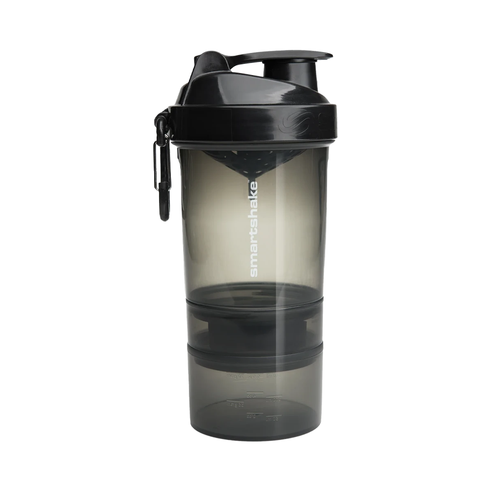Данный шейкер состоит из нескольких частей. Это собственно шейкер, в котором смешивается и хранится спортивный коктейль. Причем получение однородного коктейля гарантируется съемной сеточкой, которая при встряхивании шейкера разбивает любые комочки и сгустки.