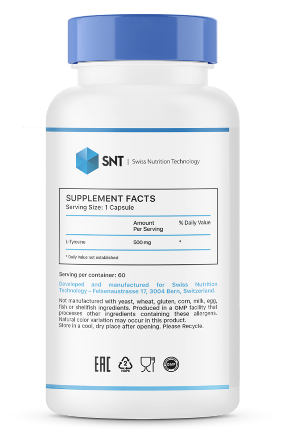 L-Тирозин относится к группе аминокислот и участвует в образовании гормонов щитовидной железы, тем самым нормализуя ее работу, но это далеко не все его полезные свойства. L-Tyrosine, помимо помощи щитовидной железе, так же влияет на состояние нервной системы, регулирует настроение, дает энергию и силы на протяжении всего рабочего дня. L-Тирозин оказывает стимулирующее действие на головной мозг, улучшая память и концентрацию.