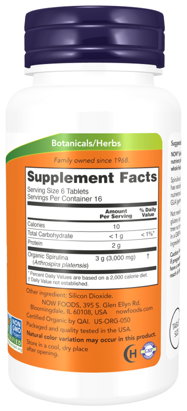 NOW Certified Organic Spirulina 500 mg, 100 таблеток