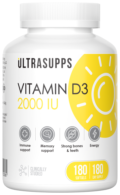 Ultrasupps Vitamin D3 2000 IU, Витамин D3 2000 МЕ, 180 капсул