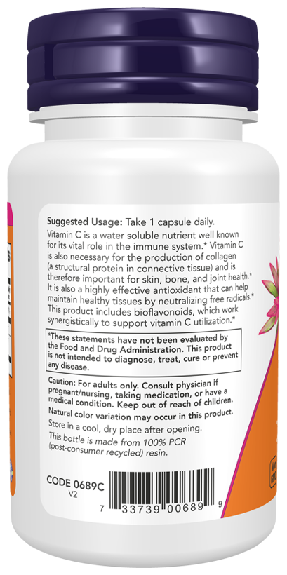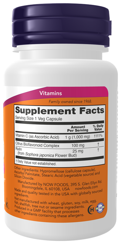 Витамин C - водорастворимое вещество, важное для иммунитета, синтеза коллагена (ключевого для кожи, костей и суставов) и защиты тканей как мощный антиоксидант, нейтрализующий свободные радикалы. Продукт усилен биофлавоноидами, которые улучшают усвоение витамина C, обеспечивая синергетический эффект.