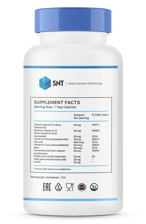 B-50 - это диетическая добавка, содержащая комплекс витаминов группы B. В составе B-50 обычно присутствуют витамины B1 (тиамин), B2 (рибофлавин), B3 (ниацин), B5 (пантотеновая кислота), B6 (пиридоксин), B7 (биотин), B9 (фолиевая кислота) и B12 (кобаламин), а также дополнительные питательные вещества.