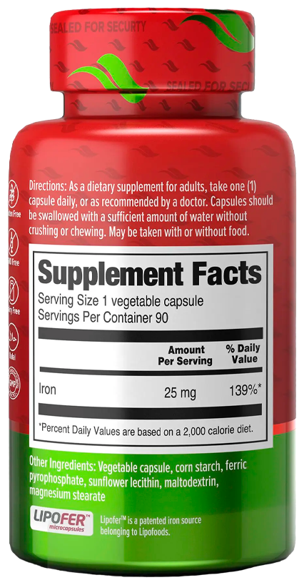 пирофосфат железа, кукурузный крахмал, гидроксипропилметилцеллюлоза, подсолнечный лецитин, мальтодекстрин, Гидроксипропилметилцеллюлоза, оксид железа, стеарат магния. |